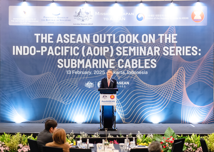 ROK Mission to ASEAN co-hosted the AOIP Seminar on Submarine Cables on 13 February in Jakarta with Australia, Indonesia, Japan, and Singapore. In his closing remarks, Ambassador Lee Jang-keun emphasized the necessity of joint efforts to ensure a secure, diverse, and resilient submarine cable network in the region.